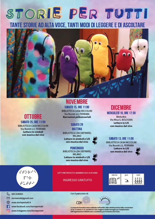 Storie per tutti è un progetto in collaborazione con Centro Documentazione Handicap / Cooperativa Accaparlante di Bologna.